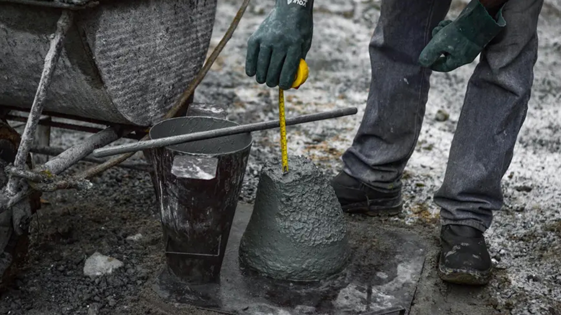 O teste mede a consistência do concreto fresco. É feito com molde cônico, preenchido em camadas e compactado. O resultado orienta a moldagem dos corpos de prova.